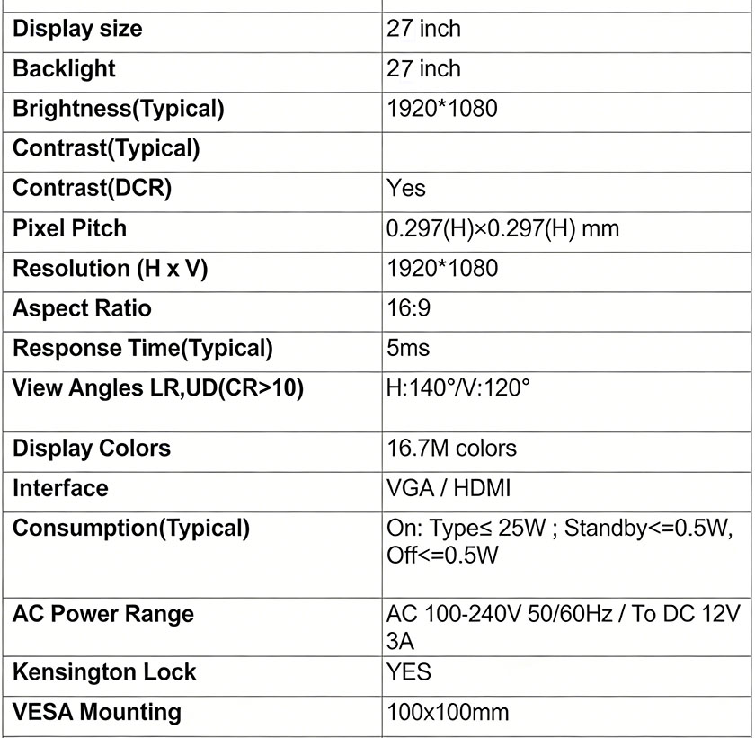 • 27 inch monitor 16:9