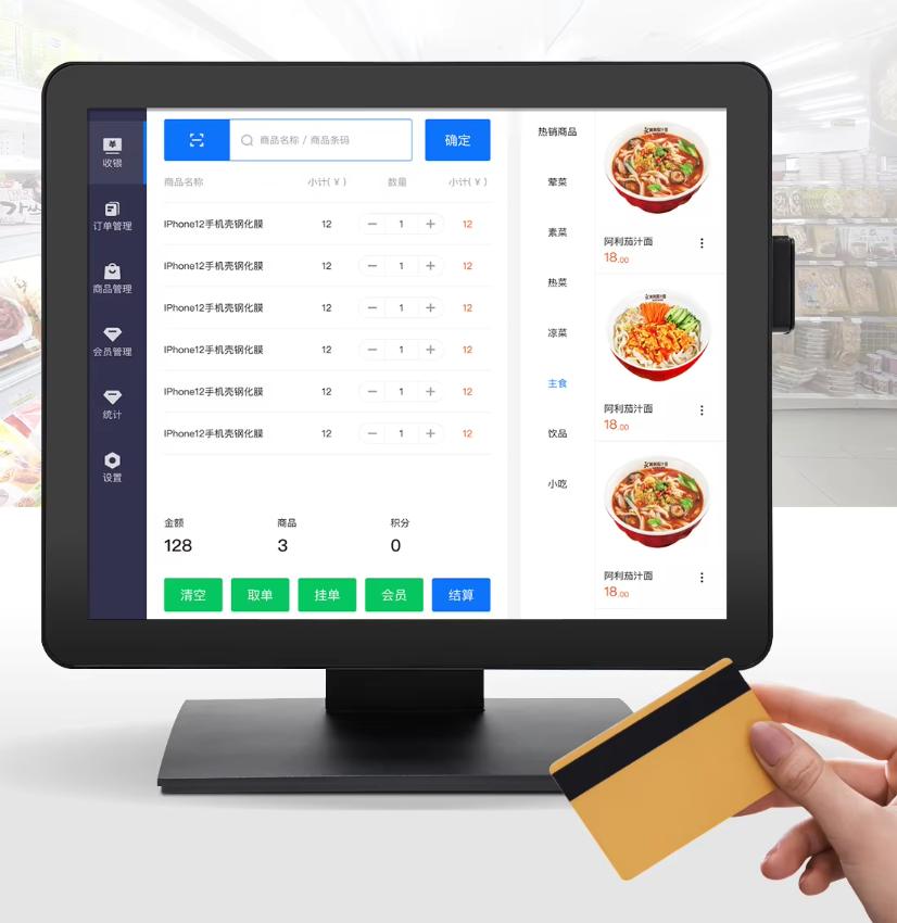 • 15 inch touch monitor with with Card Reader