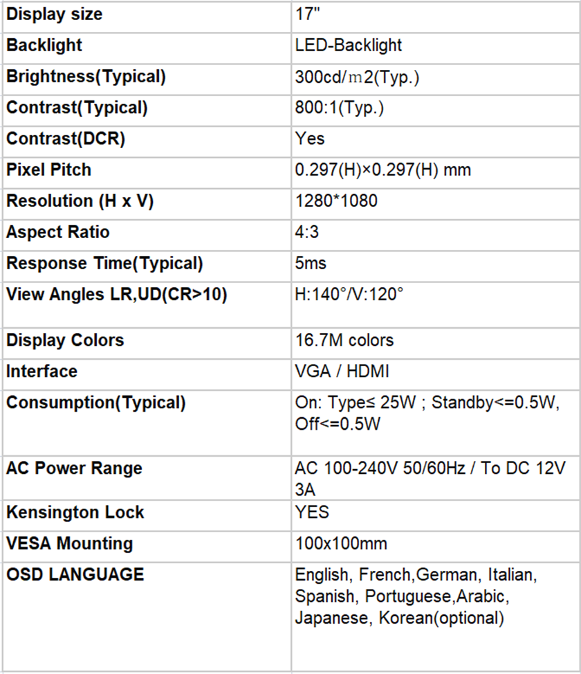 • Product description: 17 inch square monitor